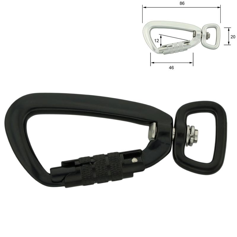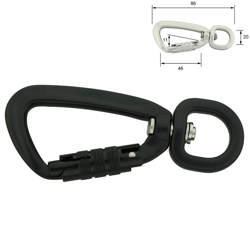 Aluminiumkarabinerhaken 86 mm mit einer außergewöhnlichen Tragfähigkeit von 400 kg. Hergestellt aus einem Material, das in der Luft- und Raumfahrt verwendet wird. Dadurch ist er extrem korrosions- und verschleißfest und gleichzeitig erstaunlich leicht – er wiegt nur 23 g.