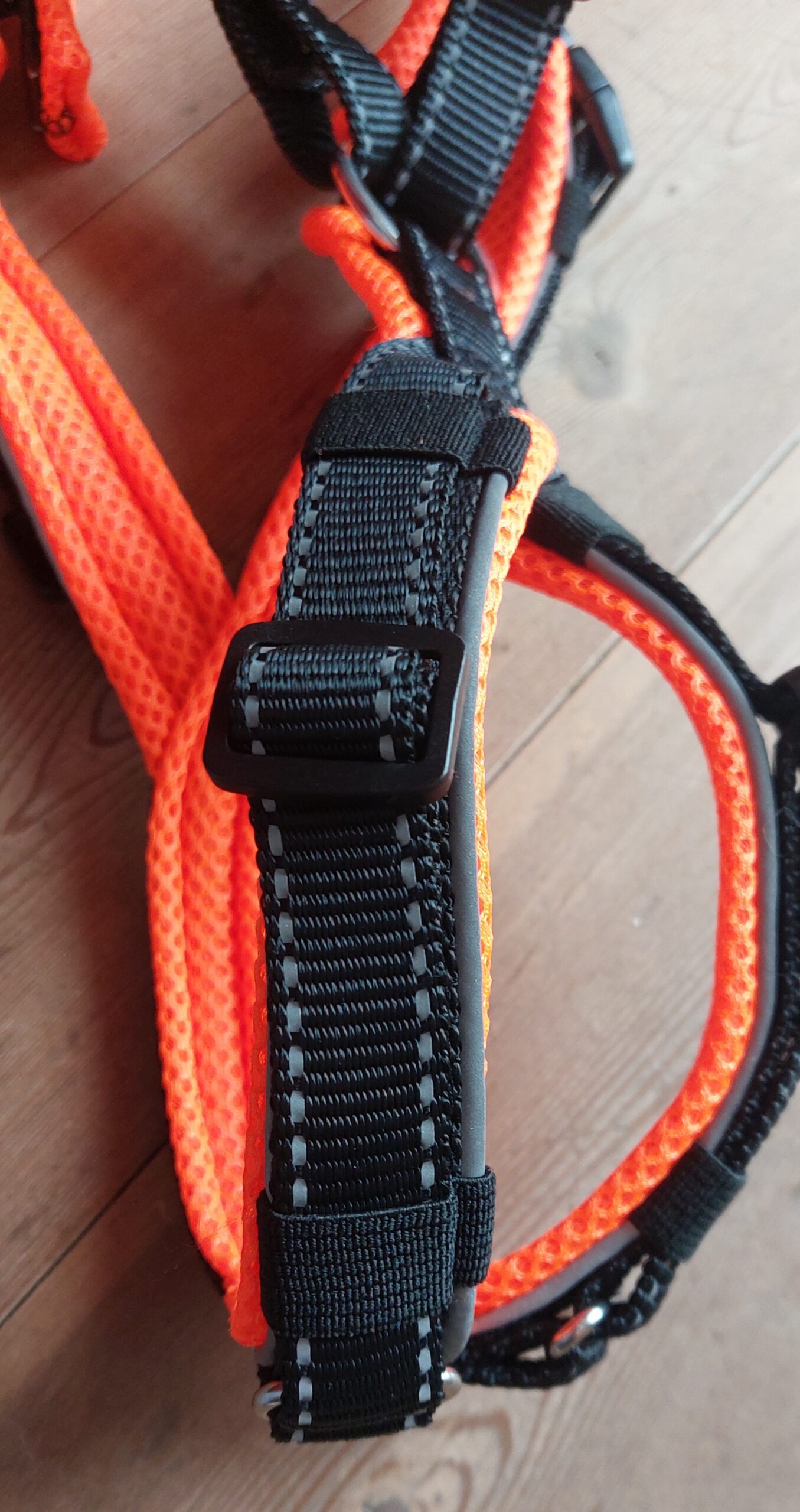 • durch die Rückenkonstruktion verrutscht das Geschirr weniger, auch bei seitlichem Zug (wie am Fahrrad zum Beispiel)